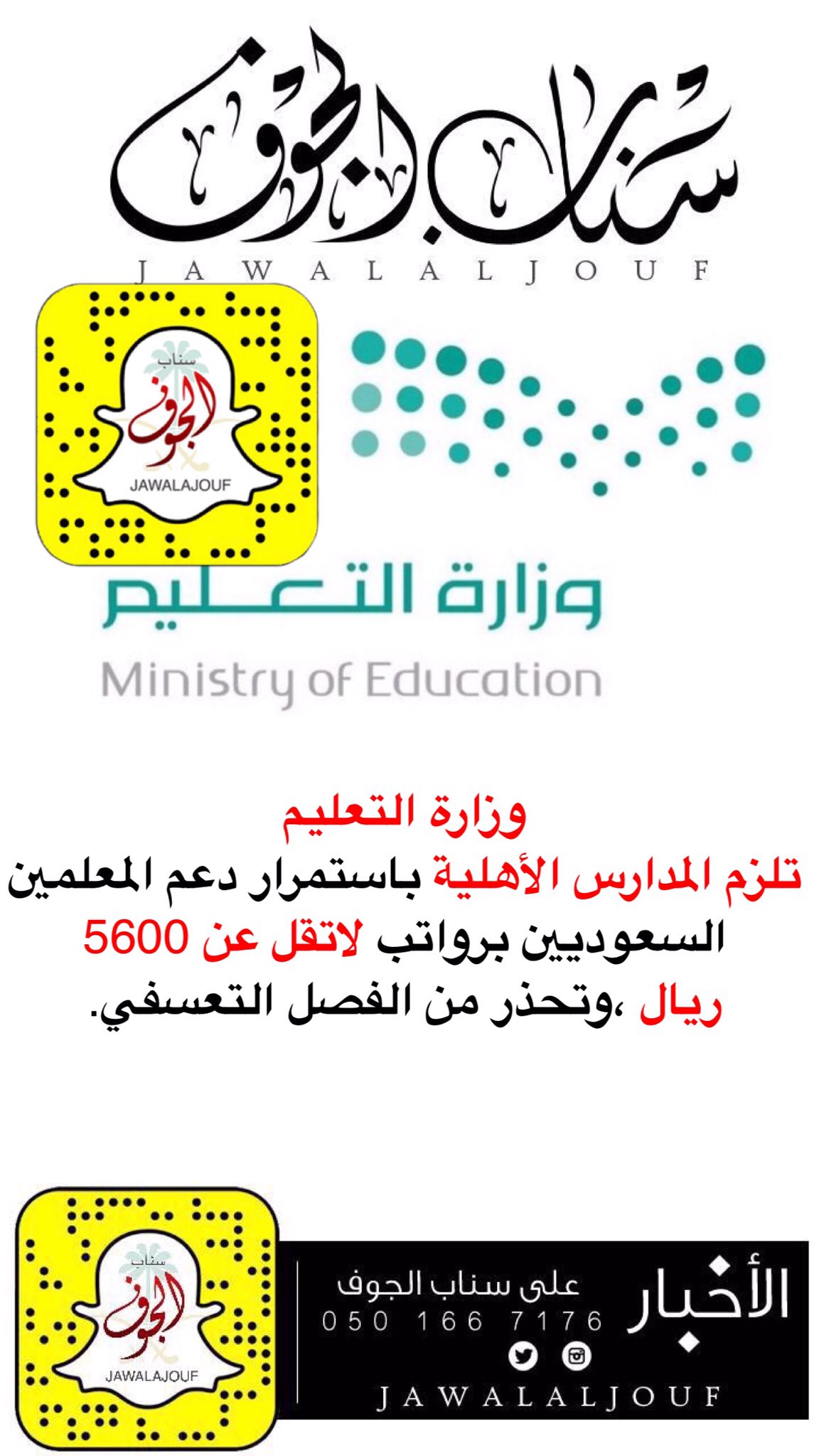 سناب الجوف نعود بحذر Auf Twitter وزارة التعليم تلزم المدارس الأهلية باستمرار دعم المعلمين السعوديين برواتب لاتقل عن 5600 ريال سناب الجوف سكاكا الجوف Https T Co V02lxj9eds